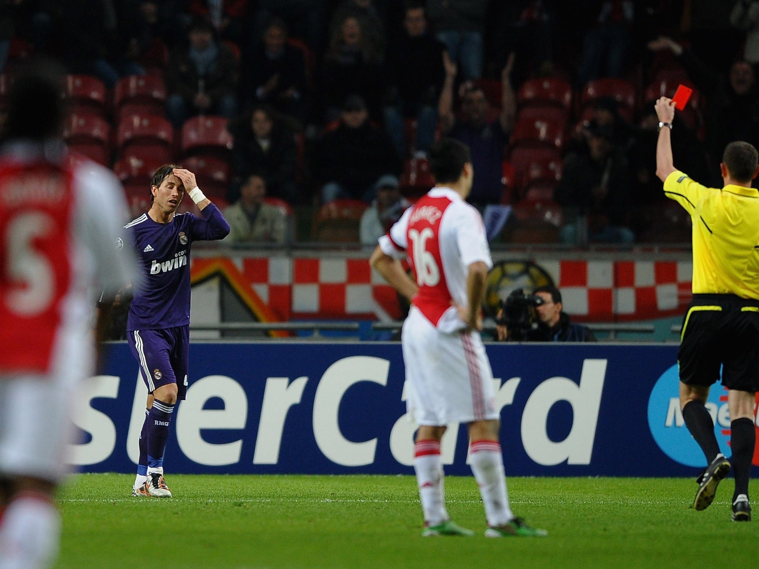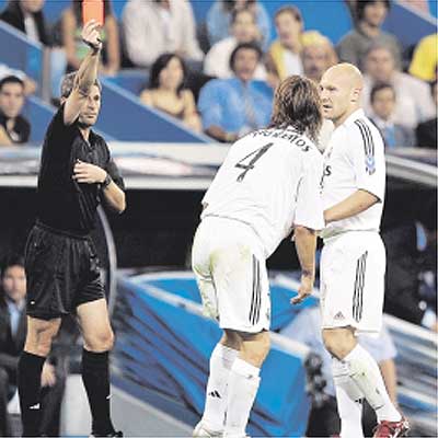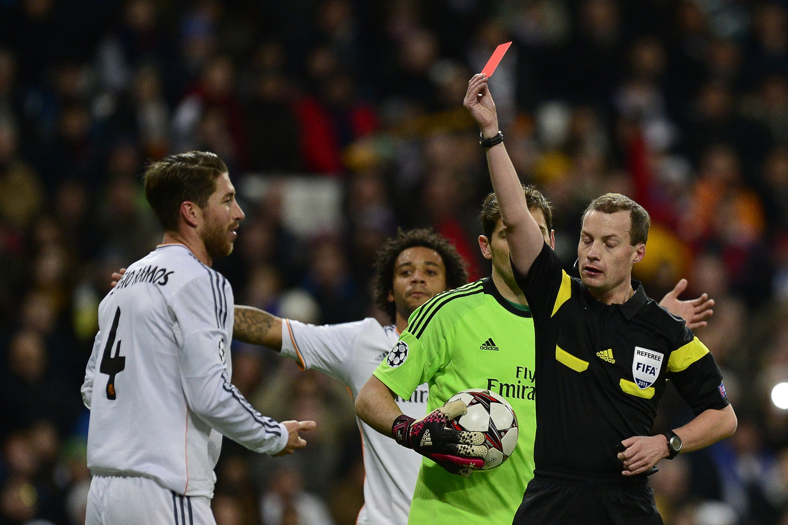 بات المدافع الإسباني سيرخيو راموس أكثر لاعب تشهر في وجهه البطاقة الحمراء في تاريخ دوري أبطال أوروبا بعدما طرد من قبل الحكم الإيطالي دانيلي أورساتو.