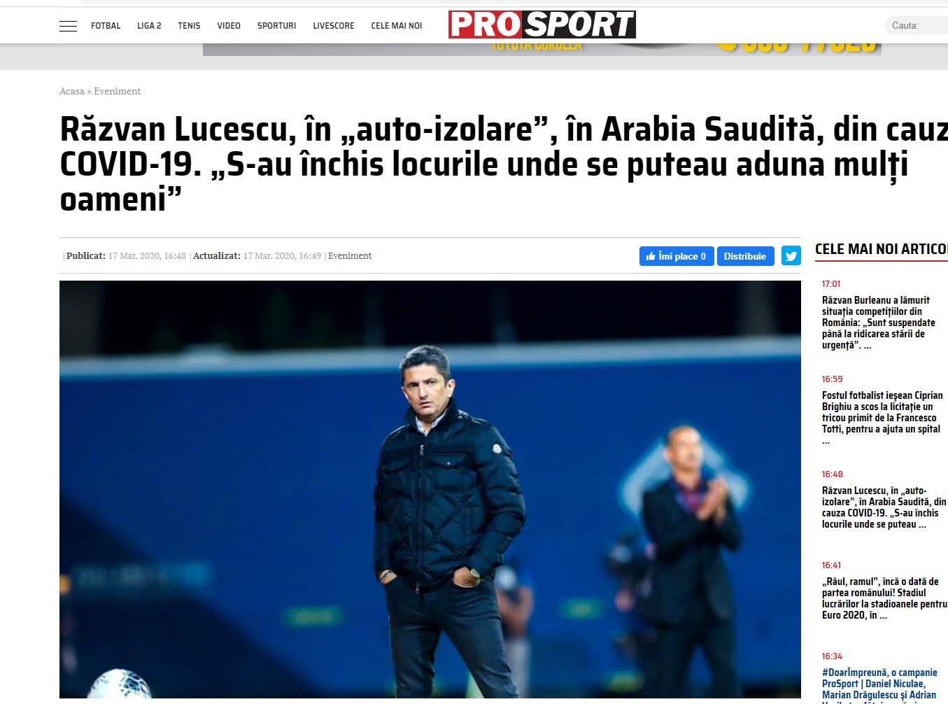وقال لوتشيسكو “51 عاما” في تصريحات نقلتها صحيفة ” prosport” الرومانية، يوم الثلاثاء: لقد اتخذت السعودية إجراءات وقائية منذ وقت مبكر، وهنا لا نشعر بالقلق، إذ يتم تقديم التوصيات مع تثقيف الجميع بكيفية تجنب انتقال هذا الفيروس، والوضع تحت السيطرة تماما، والناس هنا يتحلون بالمسؤولية.