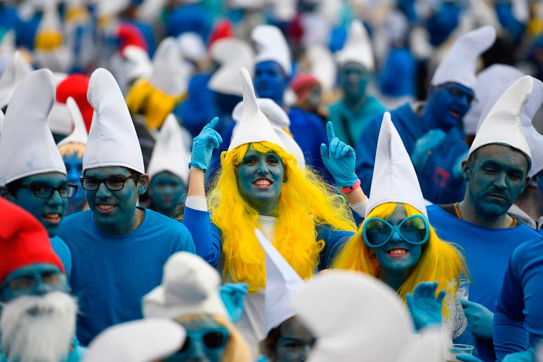 تجمع قرابة 3500 شخص غرب فرنسا السبت، متنكرين في أزياء لشخصيات خيالية من مسلسل الرسوم المتحركة الشهير “السنافر” من اجل تحطيم الرقم القياسي العالمي لأكبر تجمع على الإطلاق لـ”السنافر”، إضافة إلى التصدي لمخاوف انتشار فيروس كورونا الجديد “كوفيد-19”.