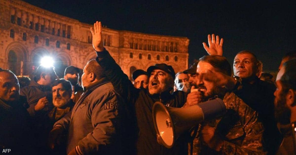 وما إن أعلن باشينيان عن توقيعه اتفاقاً “مؤلماً” مع أذربيجان لوقف إطلاق النار في الإقليم المتنازع عليه بين البلدين، حتّى تقاطر آلاف من المتظاهرين الغاضبين إلى المقرّ الحكومي حيث تظاهر القسم الأكبر منهم خارج المقرّ في حين اقتحمه بضع مئات منهم وعاثوا خراباً في مكاتبه وحطّموا زجاج عدد من نوافذه.