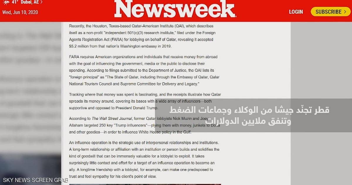 كما أشارت “نيوزويك” إلى أنه على الرغم من كون قطر “مُصدّرا رئيسيا للأفكار المتطرفة، والراعي الرسمي لتنظيم الإخوان، فإن إغراء ثروتها مكّنها من شراء بعض المؤيدين”.