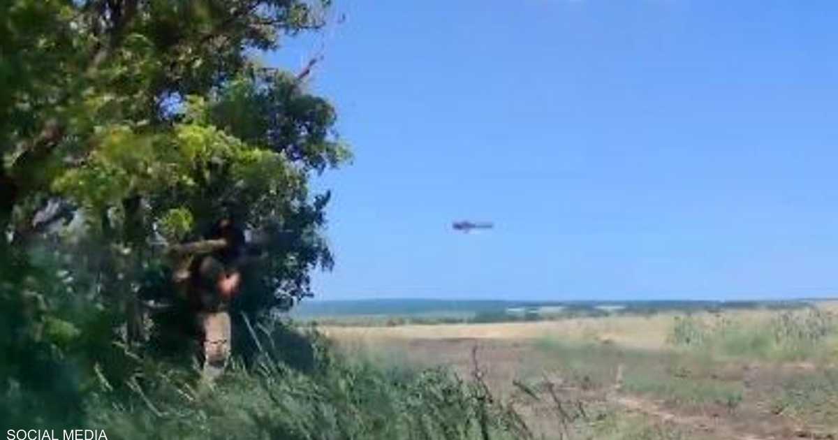 وخلال لحظات، أطلق الجندي الصاروخ صوب المروحية التي كانت تحلق فوق منطقة زراعية، حتى تمكن إصابتها.