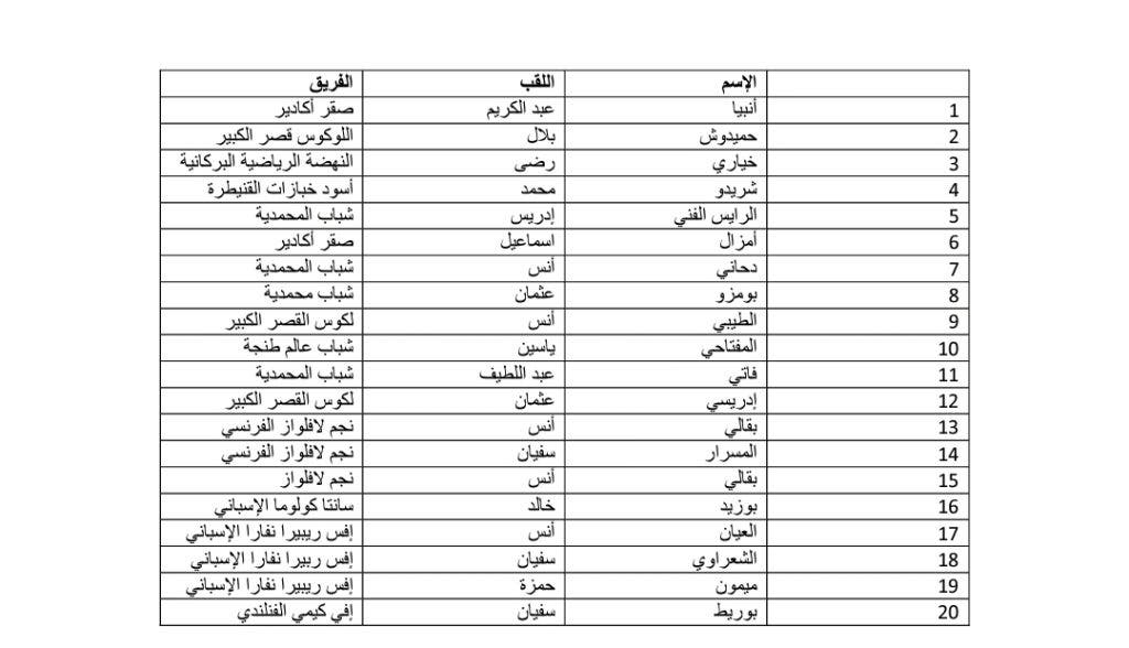 وفي هذا الصدد، وجه الناخب الوطني هشام الدكيك الدعوة للأسماء التالية: