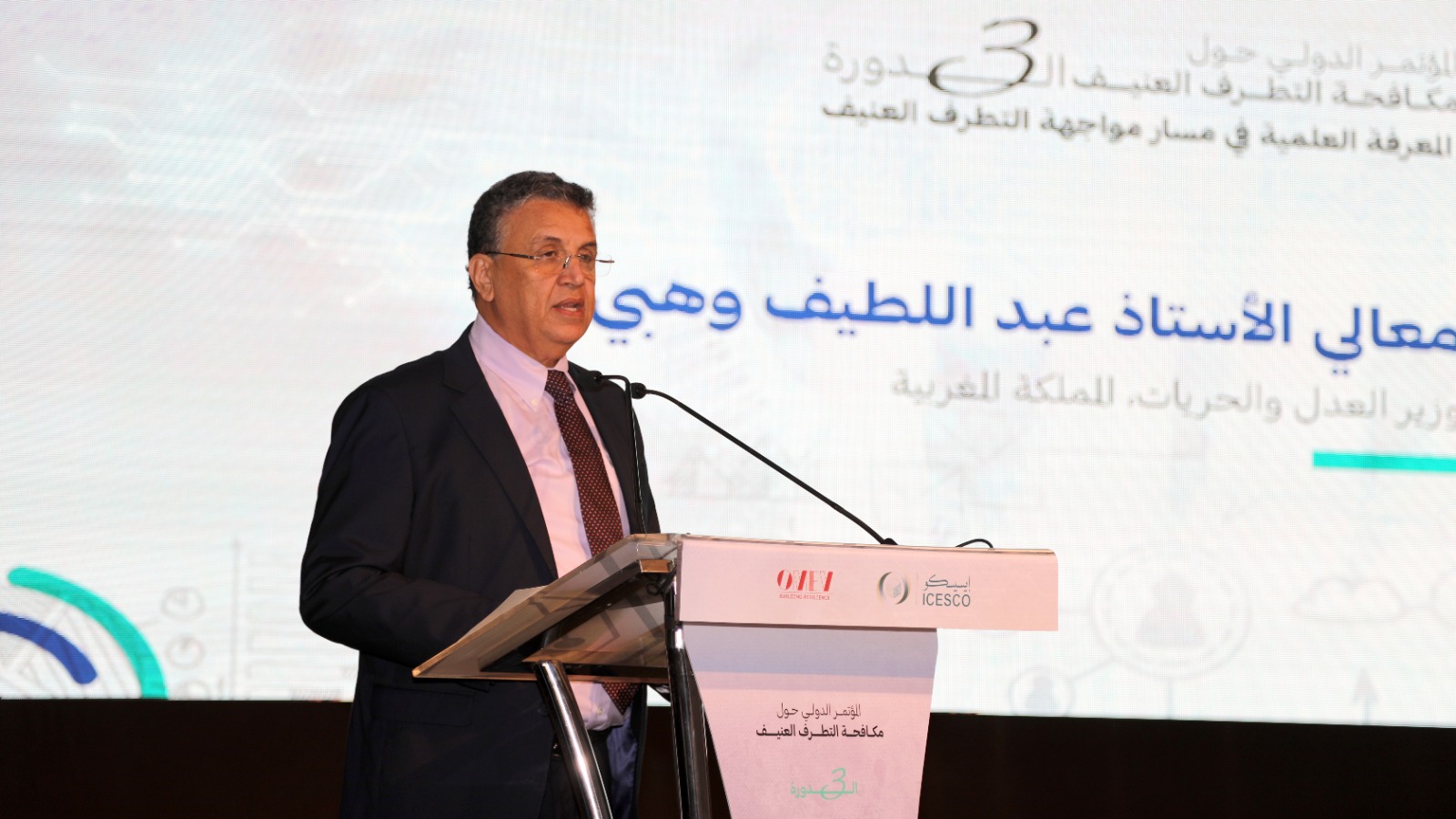 وفي كلمته أكد عبد اللطيف وهبي، وزير العدل بالمملكة المغربية، أن المعرفة العلمية قادرة على تحصين الأشخاص ضد الأفكار المتطرفة، مشيرا إلى حرص المملكة على نهج مقاربة وطنية في مجال التصدي للإرهاب، وأن هذه المقاربة تعمل على مجابهة أسباب الفكر المتطرف.