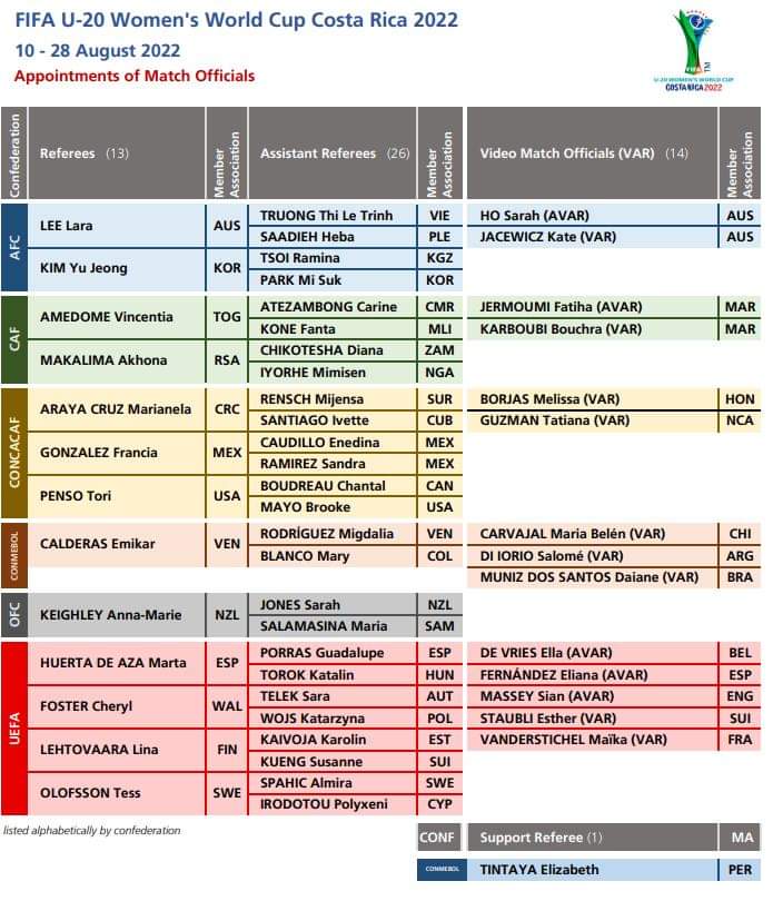 و هاته القائمة الرسمية للحكمات اللواتي تم اختيارهن لقيادة بطولة العالم بكوسطاريكا: