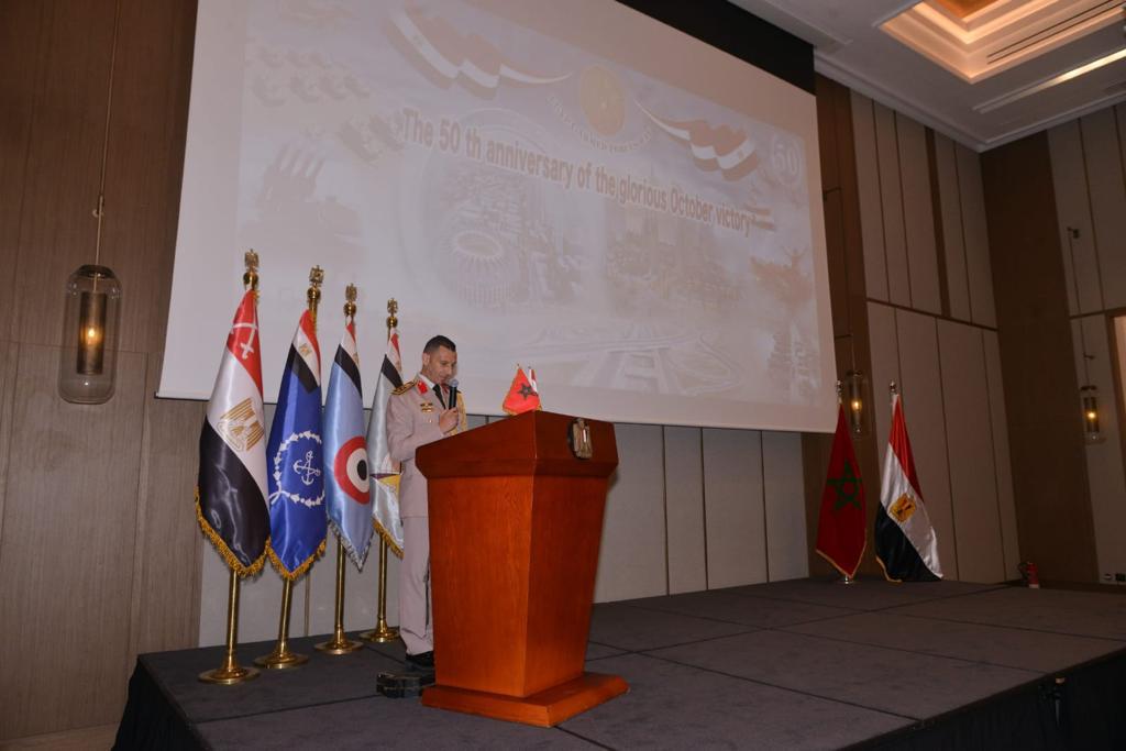 واستهل العقيد أركان حرب مصطفى نصر، ملحق الدفاع المصري في الرباط، كلمته بالتأكيد على أن يوم السادس من أكتوبر 1973 كان وسيظل عنوانا للكبرياء والكرامة لمصر والأمة العربية، يوم أذهل المقاتل المصري العالم، وأثبت للجميع أن موازين القوى بمنطقة الشرق الأوسط لا يمكن تحديدها طبقا لهوى طرف واحد اعتقد أنه يمكن فرض أمر واقع بالقوة.
