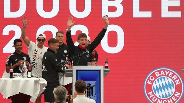 احتفل نجوم فريق بايرن ميونخ، المتوج بالثنائية المحلية في قاعة مدينة ميونخ يوم الأحد، لكنهم لم يظهروا في الشرفة، إذ كان هناك عدد قليل للغاية من المشجعين في الساحة بالخارج بسبب الإجراءات الاحترازية المتبعة إزاء فيروس كورونا المستجد “كوفيد-19”.