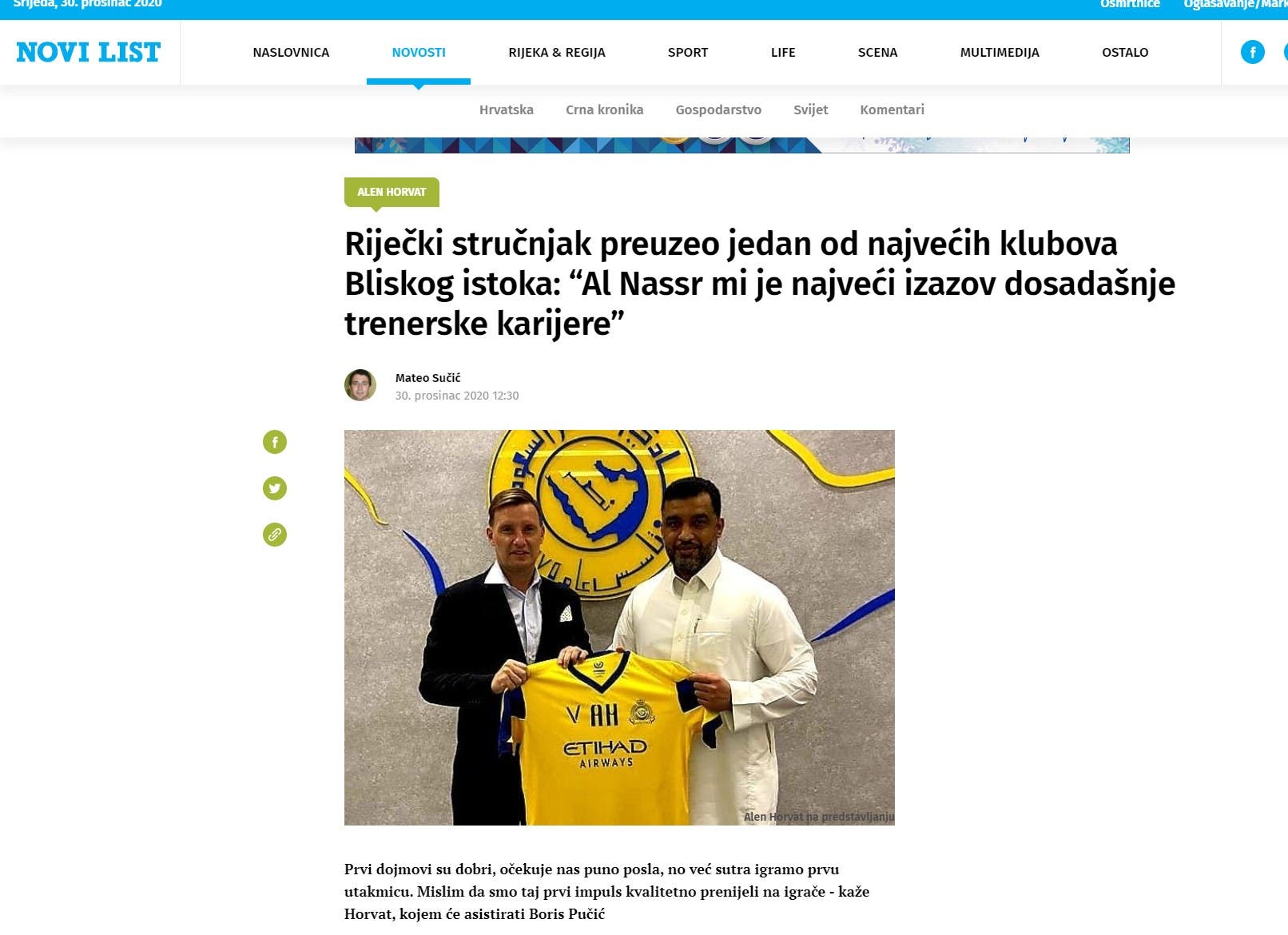 كشف الكرواتي آلين هورفت، المدرب الجديد والمؤقت لنادي النصر، أنه وجد اللاعبين في حالة بدنية وذهنية سيئة، كما يعمل على تحليل أسباب فشل الفريق في الفترة الماضية وذلك للخروج من سلسلة النتائج السلبية.