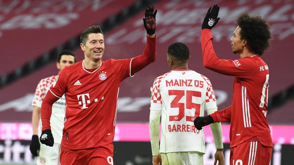 استعاد بايرن ميونيخ حامل اللقب صدارة دوري الدرجة الأولى الألماني لكرة القدم بعدما قلب تأخره بهدفين إلى فوز 5-2 على ماينز صاحب المركز قبل الأخير يوم الأحد إذ واصل روبرت ليفاندوفسكي هز الشباك.