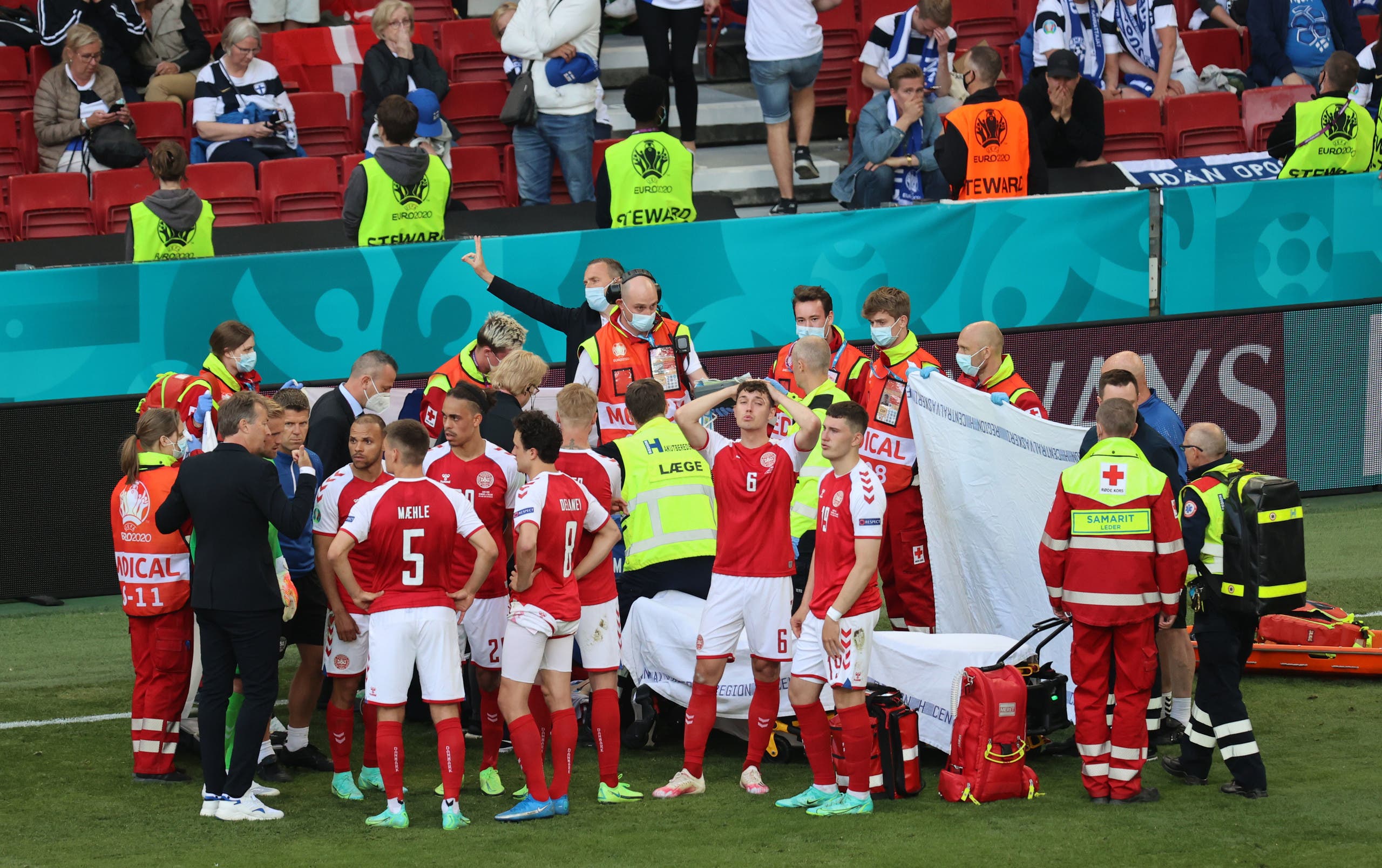 وقبل ذلك النهائي بـ 29 يومًا وتحديدًا خلال أولى مباريات البطولة بين منتخبي الدنمارك وفنلندا، صدم سقوط الدنماركي كريسيتان إريكسن مغشيًا عليه الجميع، إثر أزمة قلبية منعته من لعب أي دقيقة منذ ذلك الحين وحتى الآن، وكانت سببًا في فسخ عقده مع ناديه أنتر ميلان بالتراضي.