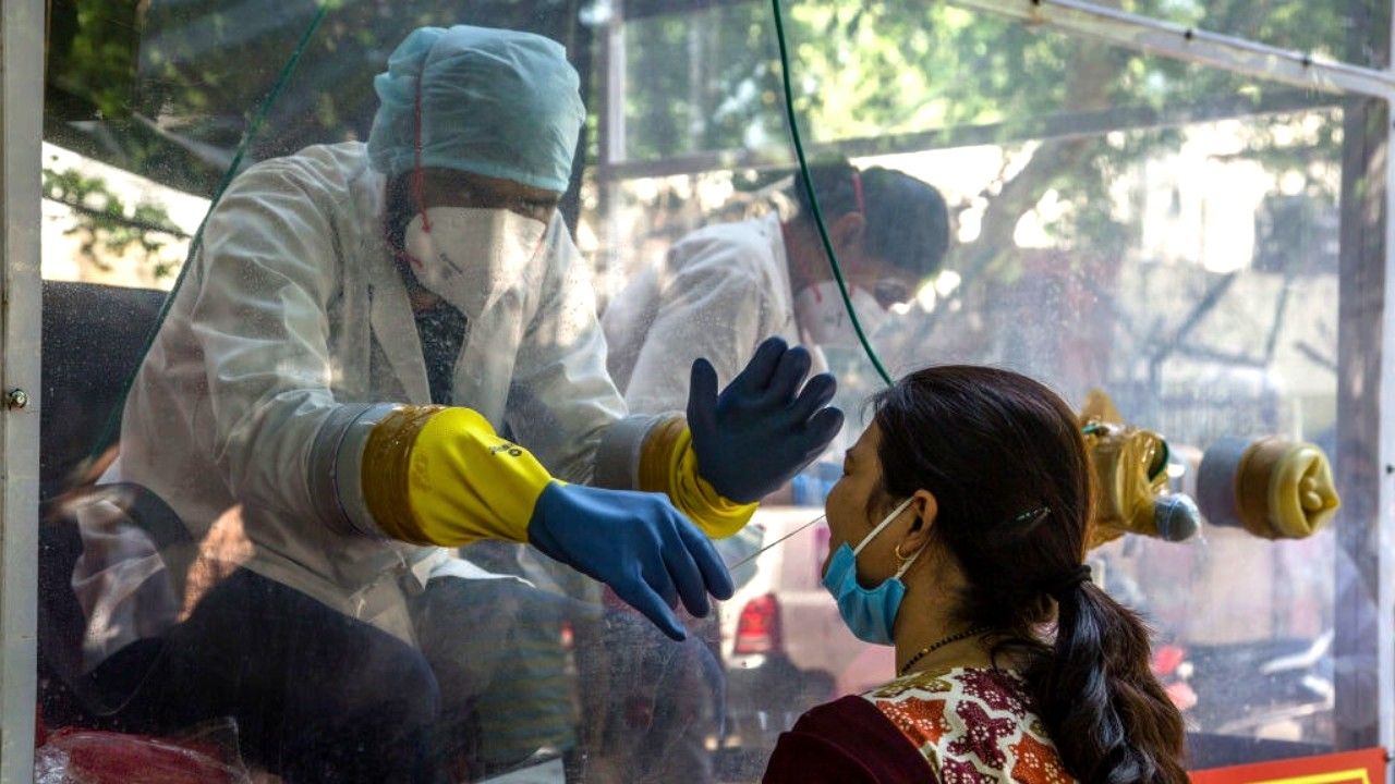 صورة توضيحية تُظهر عامل طبي يقوم باجراء اختبار كورونا لسيدة في الهند. المصدر: غيتي