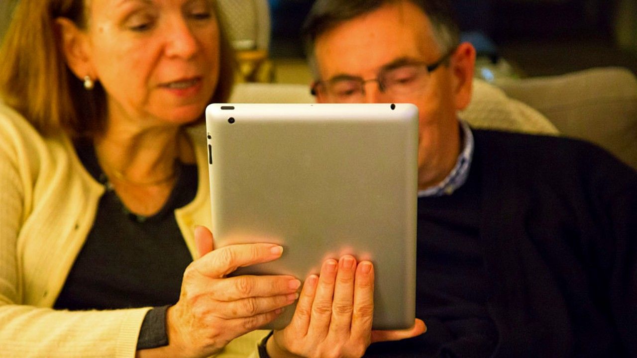 زوجان يجريان محادثة عبر تطبيق على الجهاز اللوحي. المصدر: غيتي