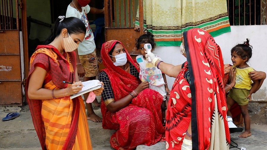 ممرضة تأخذ حرارة طفل في أحمد أباد, الهند. المصدر: رويترز