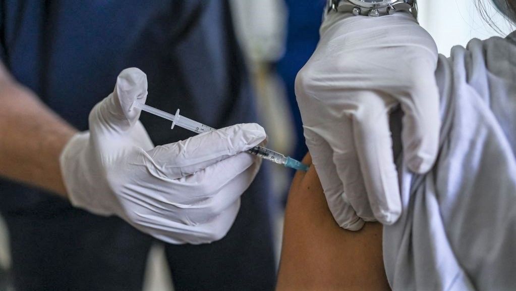 صورة تظهر سيدة في اليونان تتلقى لقاح كورونا. المصدر: getty