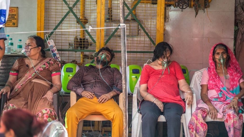 صورة تظهر عدداً من مرضى كورونا يستخدمون أجهزة الأوكسجين في الهند. المصدر: getty